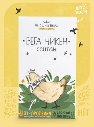 Вега чикен — это продукт с высоким содержанием белка из зерен пшеницы и полбы, который по внешним и вкусовым параметрам практически не отличается от кусочков курицы, но при этом полностью состоит из растительных компонентов и является 100% веганским продуктом.